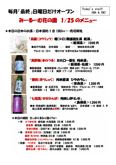 次回: 2/22(日) 17:30〜23:00 (22:00LO)